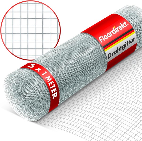 FLOORDIREKT Drahtgitter - Wühlmausgitter - Verzinkt - Maschenweite: 6,3 mm - 1 x 5 m