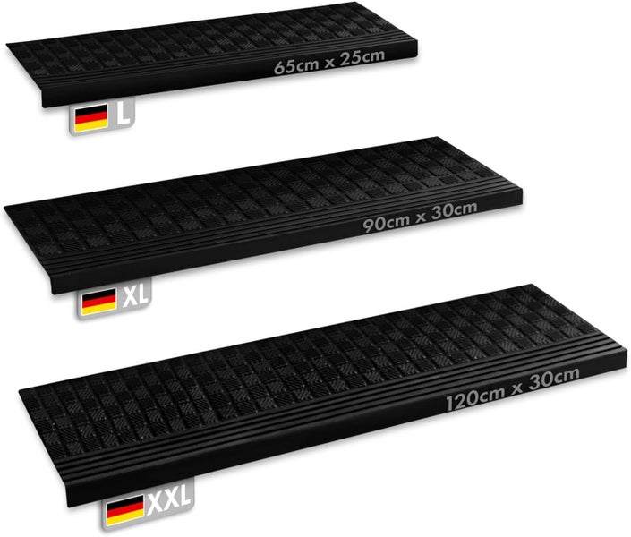 Die robusten und witterungsbeständigen Gummi-Stufenmatten eignen sich besonders für eine Verwendung auf Außentreppen und sorgen durch ihre rutschhemmenden Eigenschaften für mehr Sicherheit beim Treppensteigen. Dank des stoßdämpfenden und strapazierfähigen Materials erhalten Ihre Stufen zusätzlich einen wirksamen Schutz gegen Abnutzung und Verschmutzungen. Die Mattenkante an der Vorderseite ist mit einem riffeligen Gummistreifen begrenzt, der für zusätzliche Trittsicherheit sorgt.