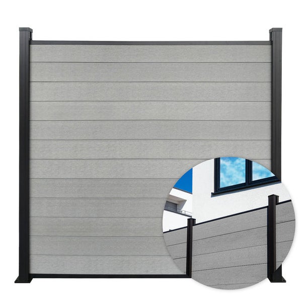 FLOORDIREKT WPC Sichtschutzzaun Kronos Komplettset Gartenzaun 180 x 180 cm Stone Grey