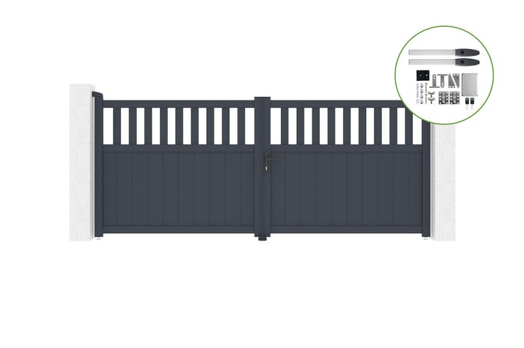 Flügeltor 3,4 m SANTIS H.140 cm Aluminium + HICKER B200 Motorisierung