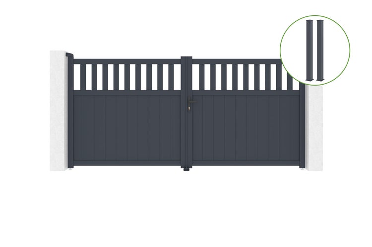 Flügeltor 3,4 m SANTIS H.160 cm Aluminium + 2 EIFEL-Pfosten 15 x 15 cm H. 190 cm