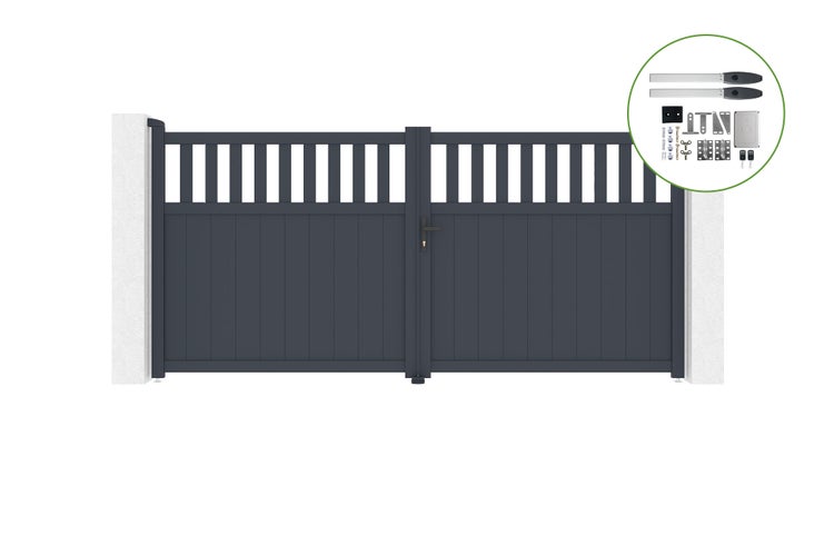 Flügeltor 3,4 m SANTIS H.160 cm Aluminium + HICKER B200 Motorisierung