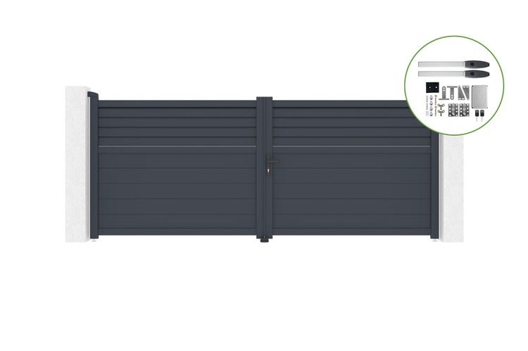 Flügeltor 3,5 m CARPATIA H.140 cm Aluminium + HICKER B200 Motorisierung