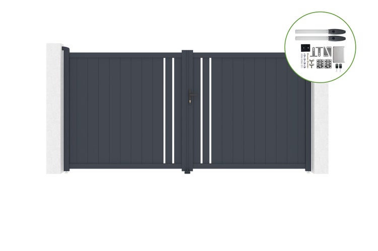 Flügeltor 3,5 m GIONA H.180 cm Aluminium + HICKER B200 Motorisierung