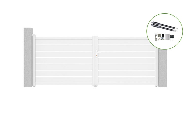 Flügeltor 3,5 m VOGEL H.140 cm Weißaluminium + Motorisierung RANGER B150