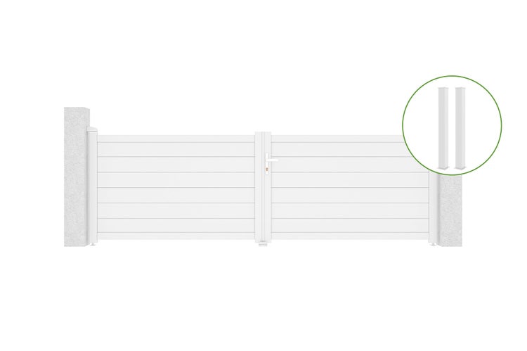 Flügeltor 3,5m EIGER H.115cm Weißaluminium + 2 Pfosten 15x15cm H.166cm WEISS