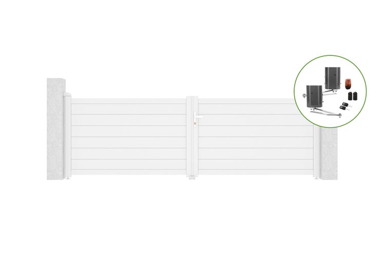 Flügeltor 3,5m EIGER H.115cm Weißaluminium + BUNKER B500 Motorisierung