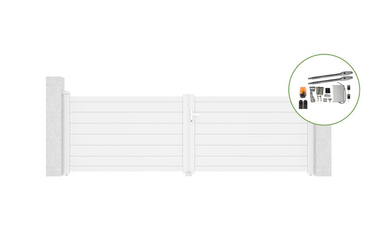 Flügeltor 3,5m EIGER H.115cm Weißaluminium + TANKER B250 Motorisierung
