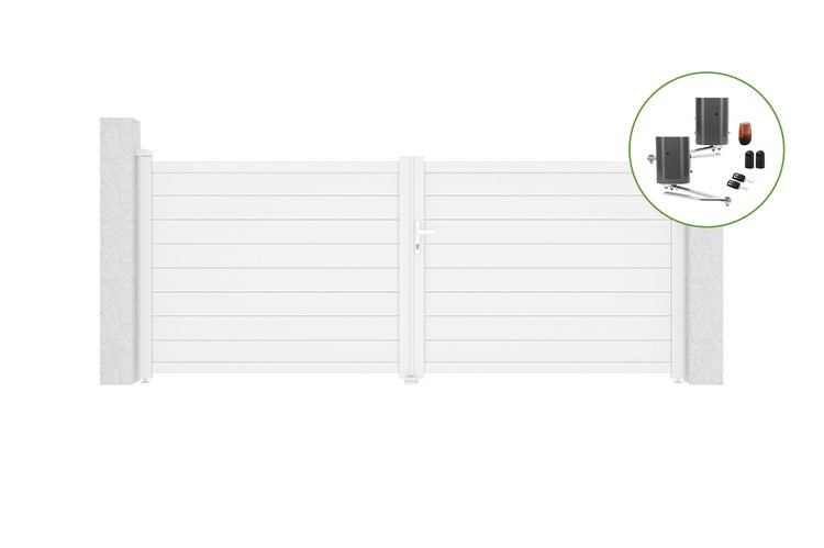 Flügeltor 3,5m EIGER H.140cm Weißaluminium + BUNKER B500 Motorisierung