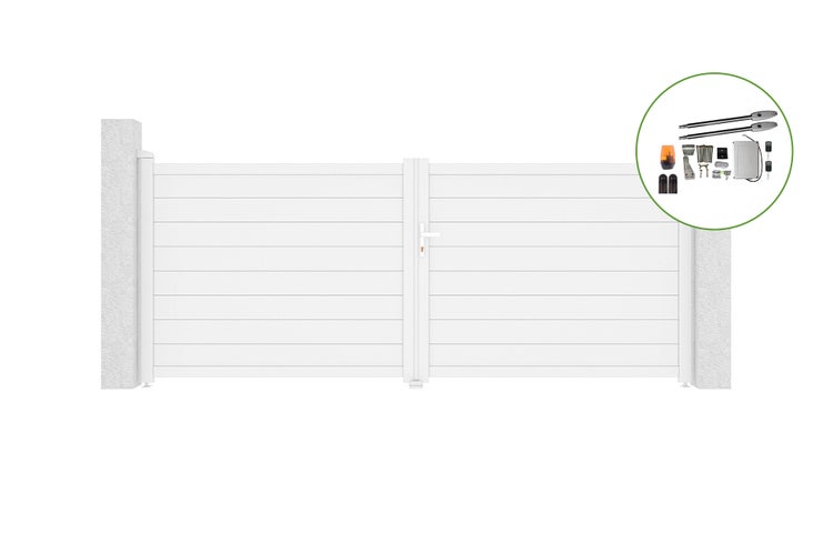 Flügeltor 3,5m EIGER H.140cm Weißaluminium + TANKER B250 Motorisierung