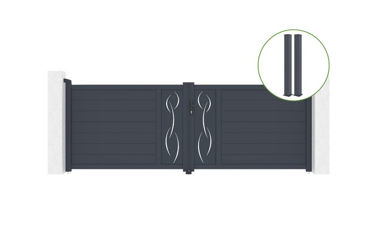 Flügeltor 3,5m LIFE H.120cm Aluminium + 2 EIFEL-Pfosten 15x15cm H.166cm GRAU