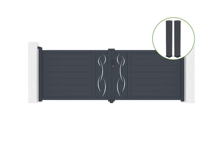 Flügeltor 3,5m LIFE H.120cm graues Aluminium + 2 Pfosten 20x20cm H.166cm