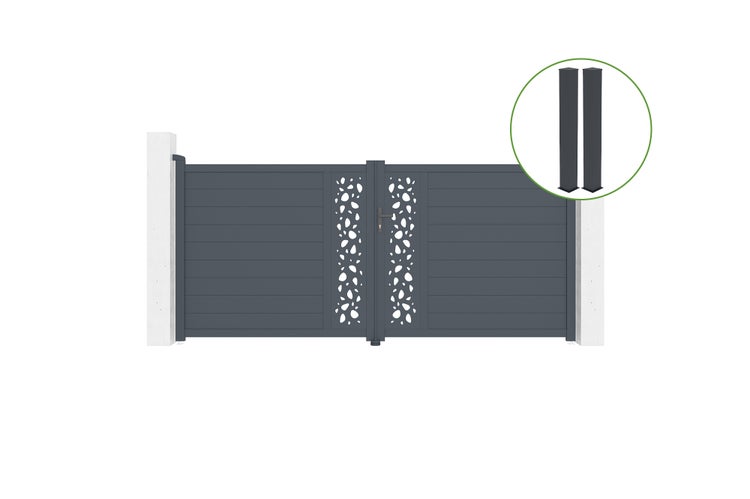 Flügeltor 3,5m SUNNY H.160cm graues Aluminium + 2 Pfosten 20x20cm H.190cm