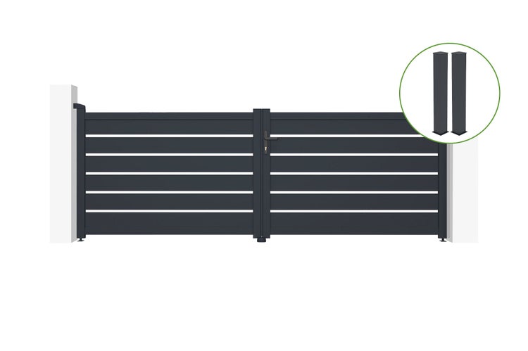 Flügeltor 3,5m VOGEL H.120cm graues Aluminium + 2 Pfosten 20x20cm H.166cm