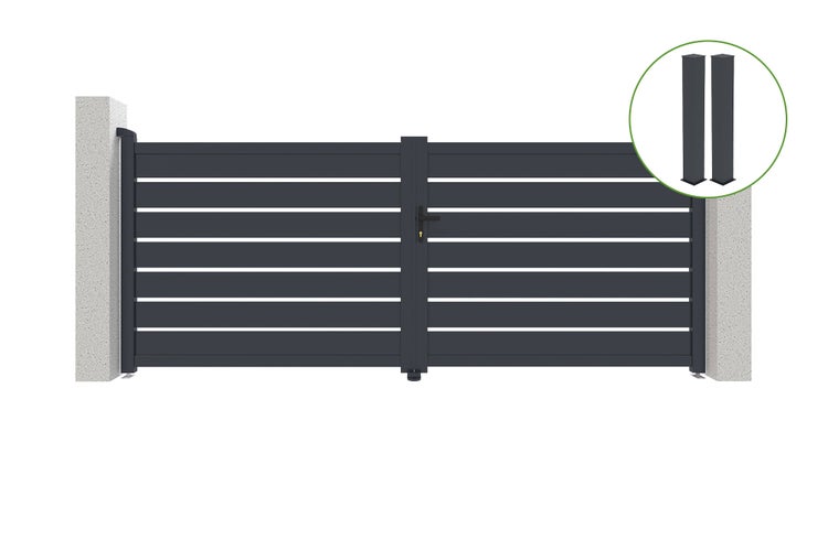 Flügeltor 3,5m VOGEL H.140cm graues Aluminium + 2 Pfosten 20x20cm H.166cm