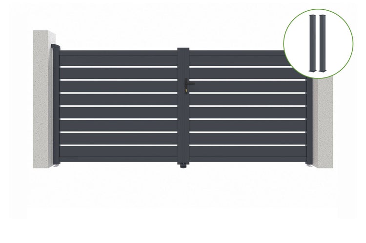 Flügeltor 3,5m VOGEL H.160cm graues Aluminium + 2 Pfosten 20x20cm H.190cm