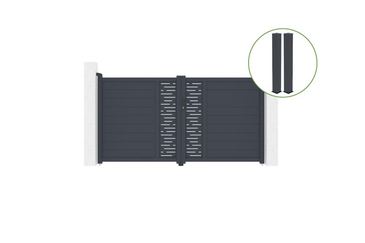 Flügeltor 3m ARLBERG H.160cm graues Aluminium + 2 Pfosten 20x20cm H.190cm