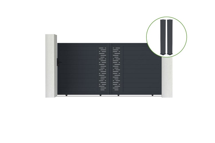 Flügeltor 3m ARLBERG H.180cm graues Aluminium + 2 Pfosten 20x20cm H.190cm