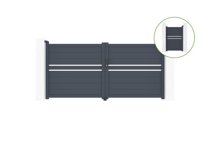 Flügeltor 3m CIMONE H.140cm Aluminium + Tor CIMONE H140 GRAU