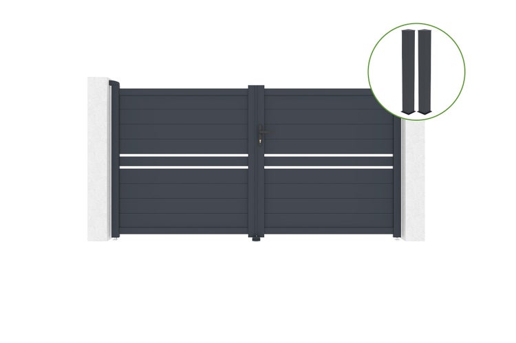 Flügeltor 3m CIMONE H.160cm graues Aluminium + 2 Pfosten 20x20cm H.190cm