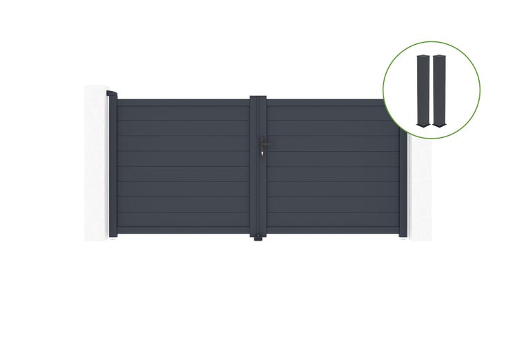Flügeltor 3m EIGER H.115cm graues Aluminium + 2 Pfosten 20x20cm H.166cm