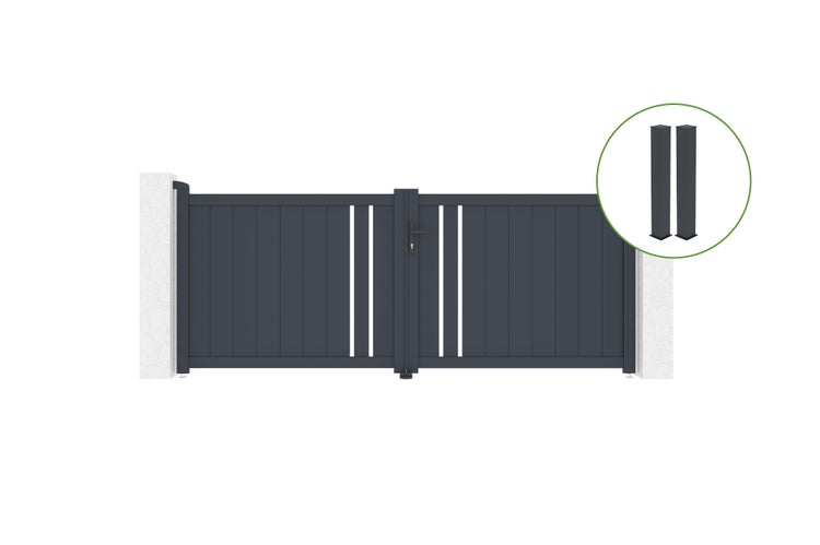 Flügeltor 3m GIONA H.120cm graues Aluminium + 2 Pfosten 20x20cm H.166cm