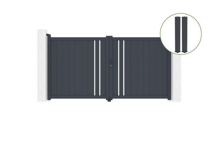 Flügeltor 3m GIONA H.160cm graues Aluminium + 2 Pfosten 20x20cm H.190cm