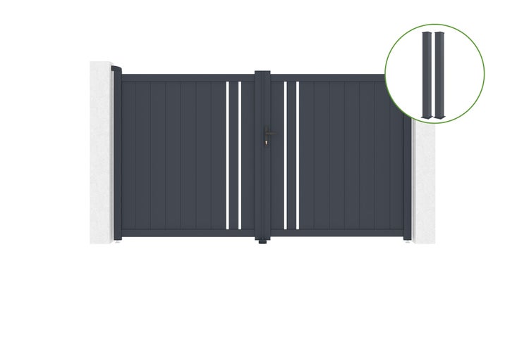 Flügeltor 3m GIONA H.180cm Aluminium + 2 EIFEL-Pfosten 15x15cm H.190cm GRAU