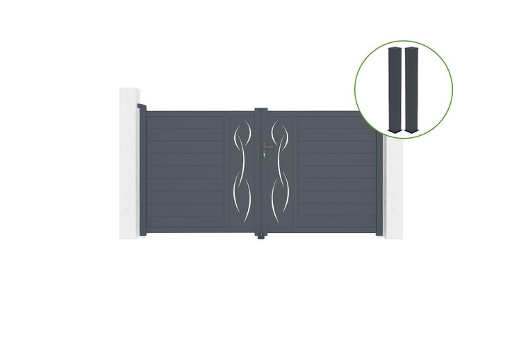 Flügeltor 3m LIFE H.160cm graues Aluminium + 2 Pfosten 20x20cm H.190cm