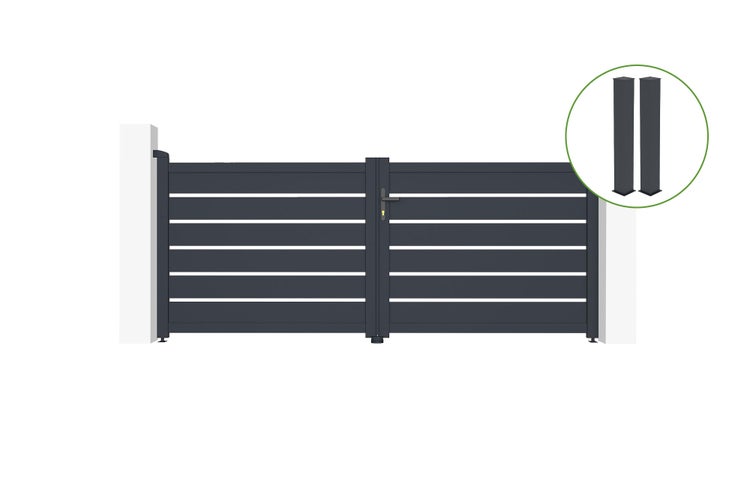 Flügeltor 3m VOGEL H.120cm graues Aluminium + 2 Pfosten 20x20cm H.166cm