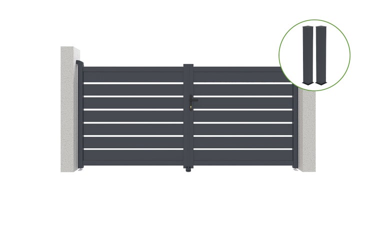 Flügeltor 3m VOGEL H.140cm graues Aluminium + 2 Pfosten 20x20cm H.166cm