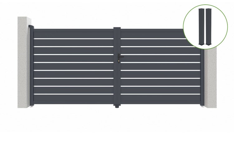 Flügeltor 3m VOGEL H.180cm graues Aluminium + 2 Pfosten 20x20cm H.190cm