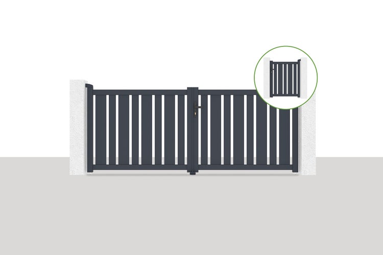 Flügeltor 3x1,2m VEYMONT + Tor 1m VEYMONT H.1,2m grau