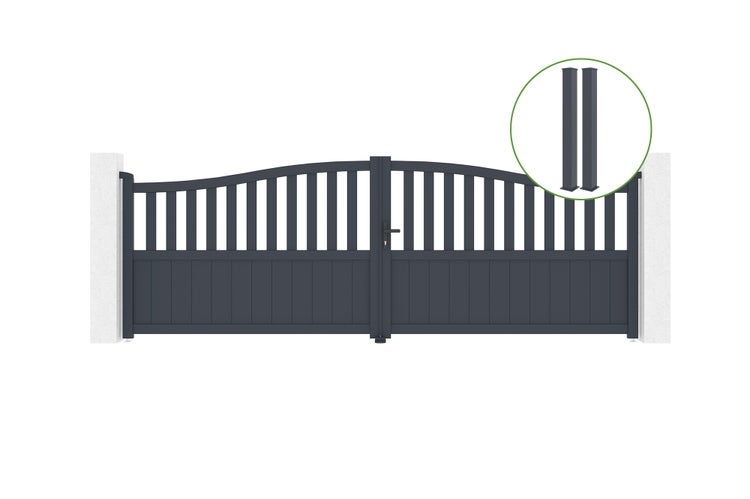 Flügeltor 4 m MEIJE H.140 cm Aluminium + 2 EIFEL-Pfosten 15 x 15 cm H. 166 cm GR
