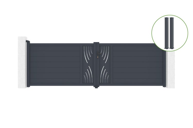 Flügeltor 4 m VELETA H.120 cm Aluminium + 2 EIFEL-Pfosten 15 x 15 cm H. 166 cm G