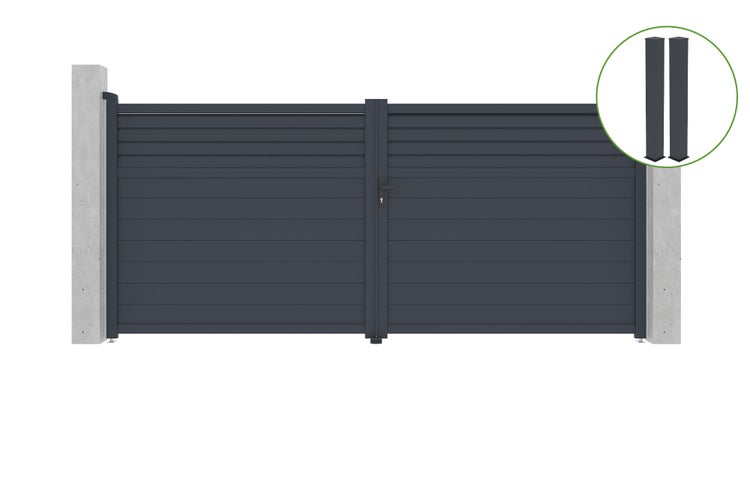 Flügeltor 4m CARPATIA H.180cm graues Aluminium + 2 Pfosten 20x20cm H.190cm