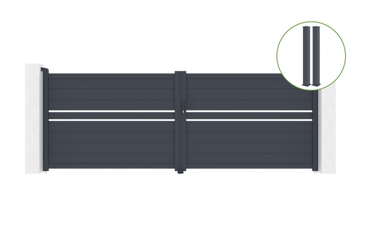 Flügeltor 4m CIMONE H.140cm Aluminium + 2 EIFEL-Pfosten 15x15cm H.166cm GRAU