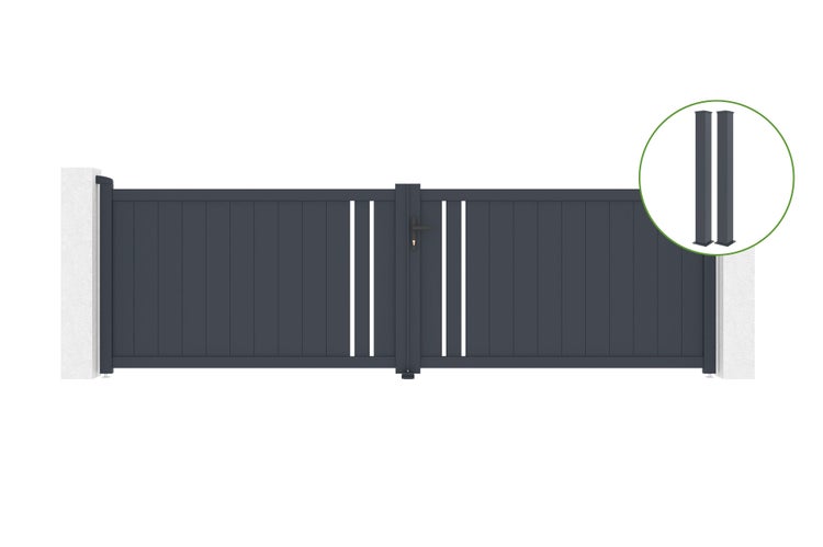 Flügeltor 4m GIONA H.120cm Aluminium + 2 EIFEL-Pfosten 15x15cm H.166cm GRAU