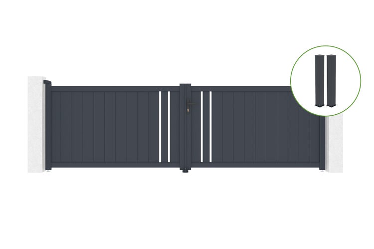 Flügeltor 4m GIONA H.120cm graues Aluminium + 2 Pfosten 20x20cm H.166cm