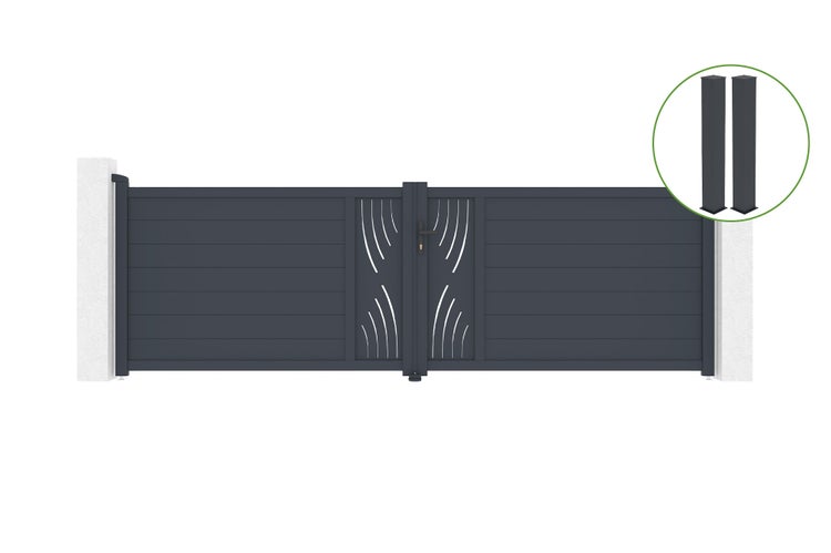 Flügeltor 4m VELETA H.120cm graues Aluminium + 2 Pfosten 20x20cm H.166cm