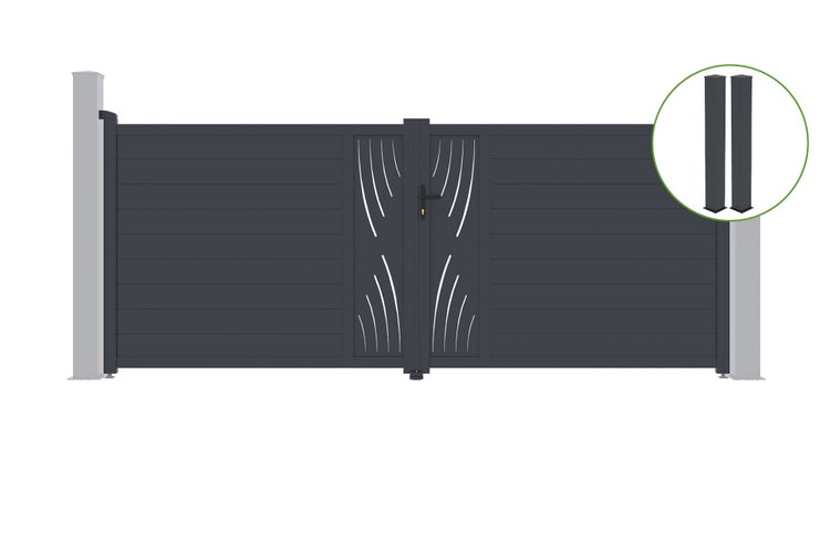 Flügeltor 4m VELETA H.160cm graues Aluminium + 2 Pfosten 20x20cm H.190cm