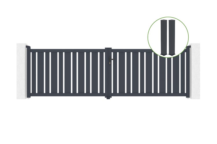 Flügeltor 4m VEYMONT H.120cm graues Aluminium + 2 Pfosten 20x20cm H.166cm