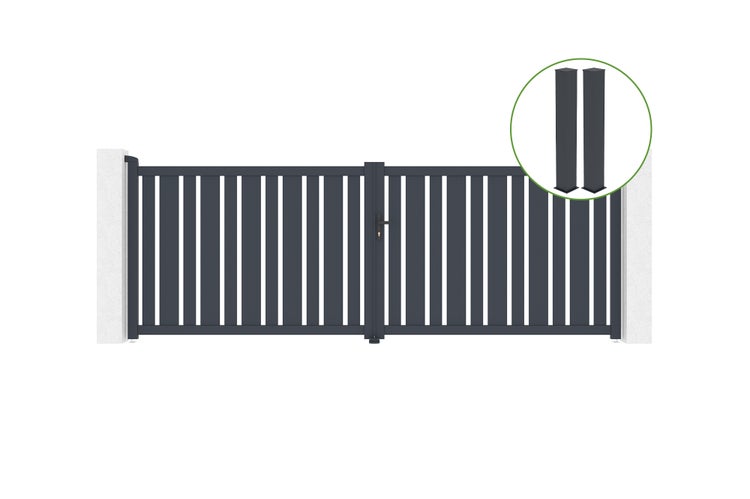 Flügeltor 4m VEYMONT H.140cm graues Aluminium + 2 Pfosten 20x20cm H.166cm