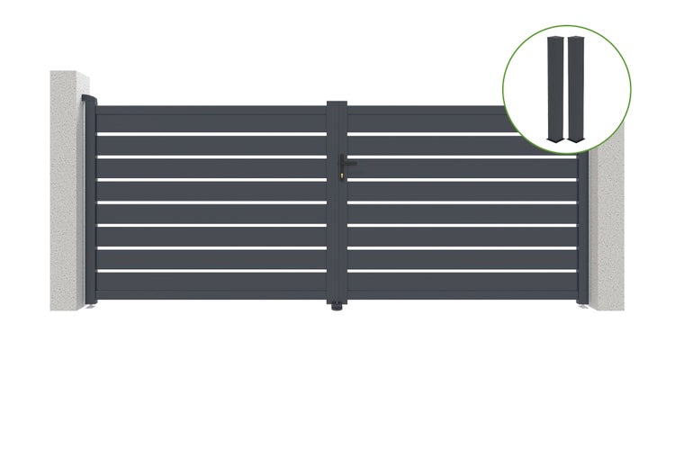 Flügeltor 4m VOGEL H.160cm graues Aluminium + 2 Pfosten 20x20cm H.190cm