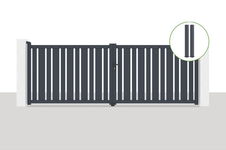 Flügeltor 4x1,4m VEYMONT + 2 EIFEL-Pfosten H.166cm Grau