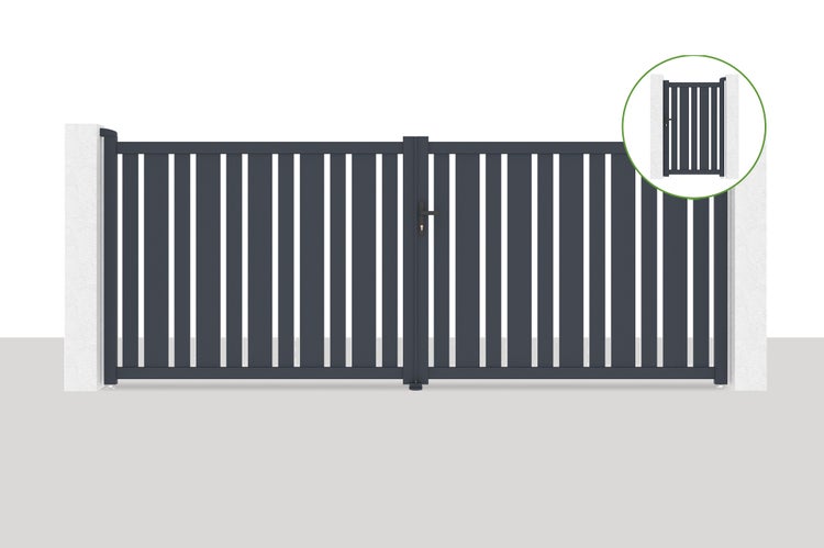 Flügeltor 4x1,6m VEYMONT + Tor 1m VEYMONT H.1,6m grau