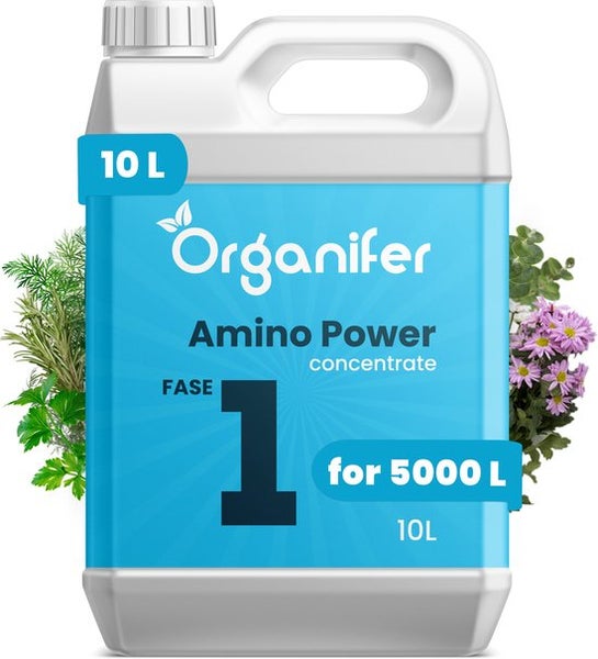 Flüssigdünger für die Wachstumsphase – Amino Power ist ein komplettes Düngemittel speziell für die Wachstumsphase jeder Pflanze und Kultur (Phase 1). Dieses leistungsstarke Konzentrat enthält eine einzigartige Mischung essenzieller Aminosäuren und enthält 9 % organischen Stickstoff aus enzymatisch hydrolysierten Proteinen. Organifer Amino Power enthält außerdem eine einzigartige Mischung mit 18 proteinogenen Aminosäuren.