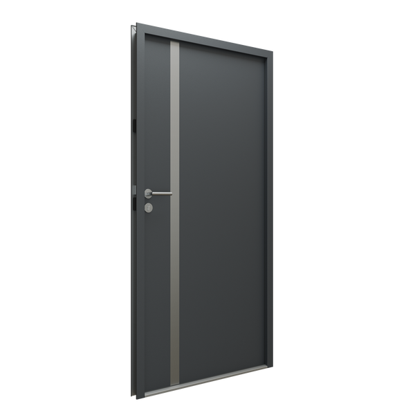 Die anthrazitfarbenen Nora-Seitentüren sind eine praktische Lösung für Garagen oder Hauswirtschaftsräume. Die vertikale Edelstahlaffleidung verleiht ihnen einen modernen Akzent, und die solide Konstruktion garantiert einen zuverlässigen Gebrauch.