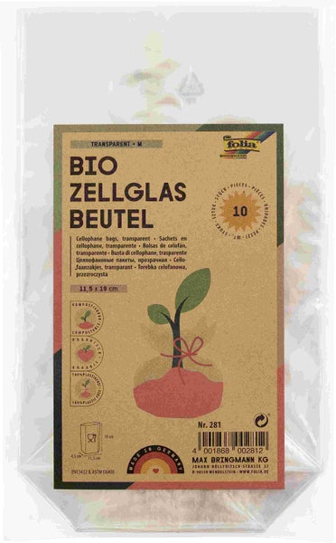Folia Bio Zellglasbeutel M Transparent, 115x190mm, 10 Stück