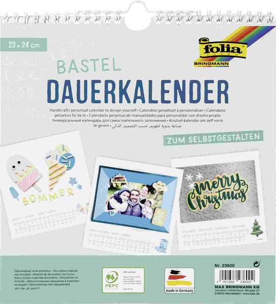 Folia Dauerkalender mit Spiralbindung 220g/m², 23x24cm, Papier weiß, Druck schwarz